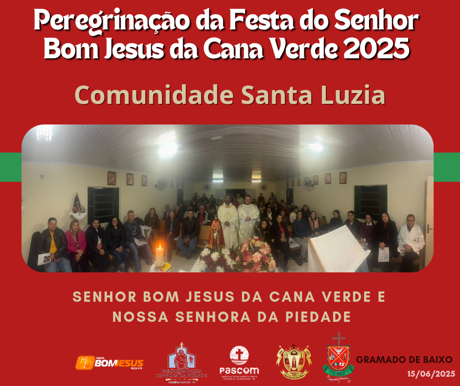 16/06/2025Comunidade Santa Luzia: O 11º dia da nossa peregrinaçãoNeste domingo, 15 de junho, a Comunidade Santa Luzia, no Gramado de […]